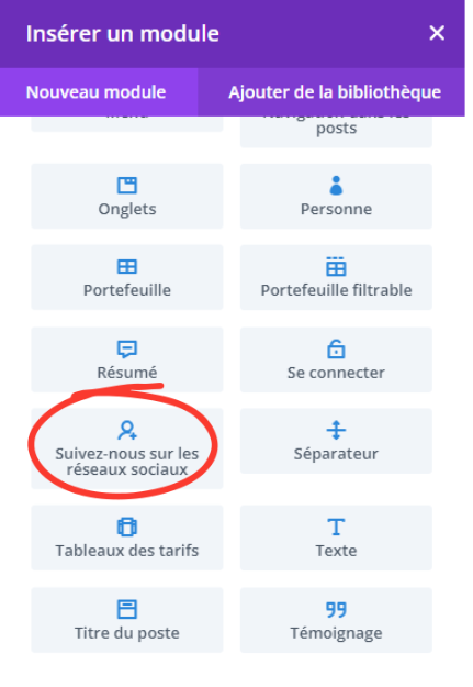 2. Apès avoir sauvegardé vos modifications, insérez un autre module « Suivez-nous sur les réseaux sociaux ».