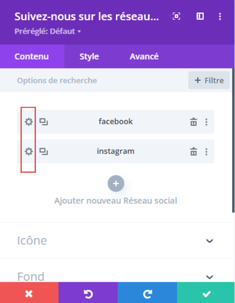 3. Il vous suffit d’inscrire les réseaux sociaux que vous voulez afficher. Cliquez sur le paramètre du réseau si vous souhaitez le modifier.